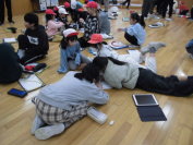 赤組は体育館、白組は多目的教室を使っての別々の場所での応援練習でした。